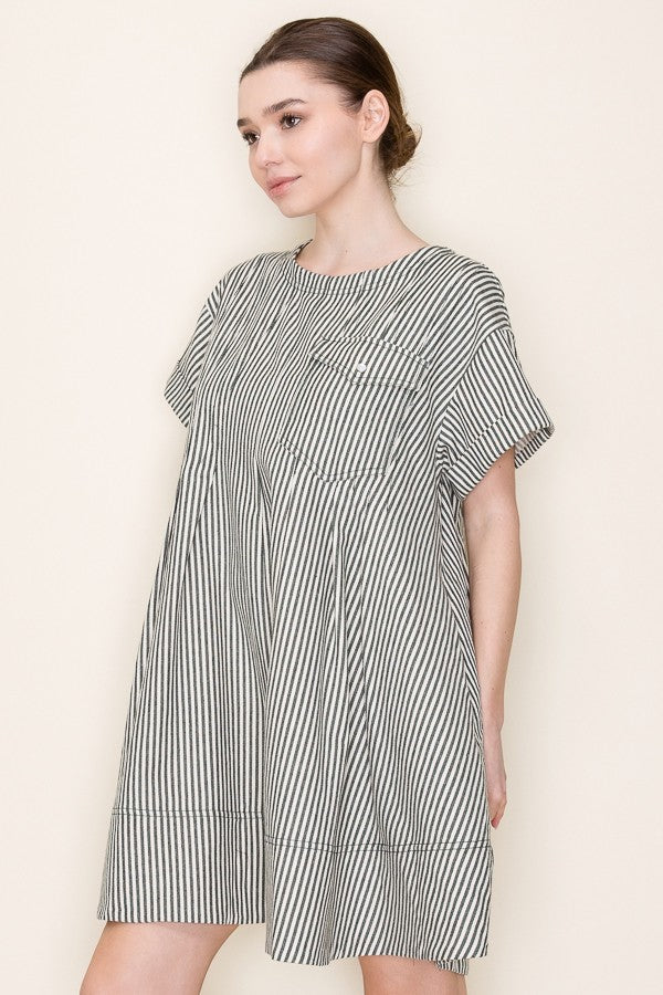 Star Drop Striped Mini Swing Dress in Olive Stripe