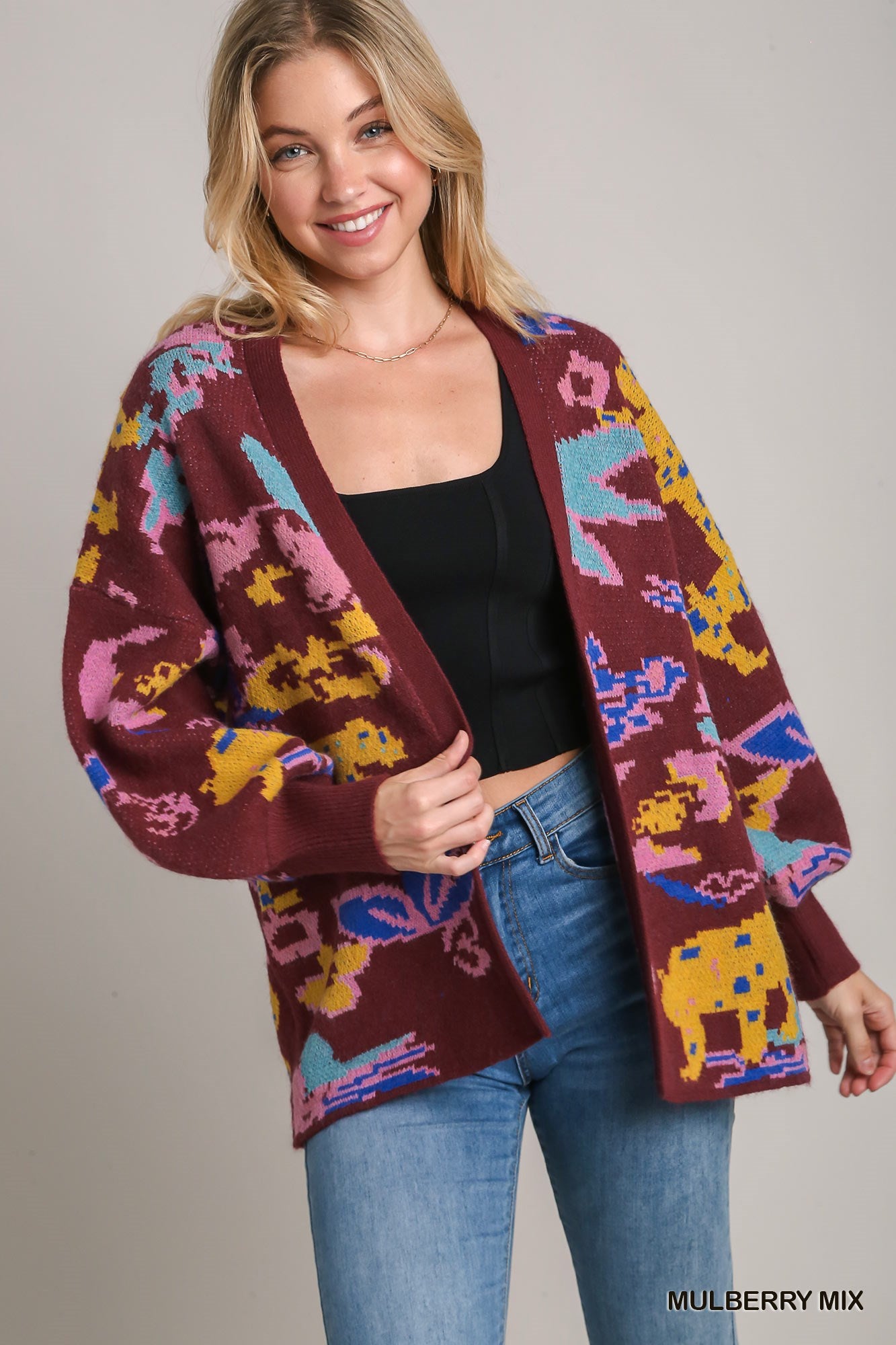 Animal Print Open Front Knit Cardigan
