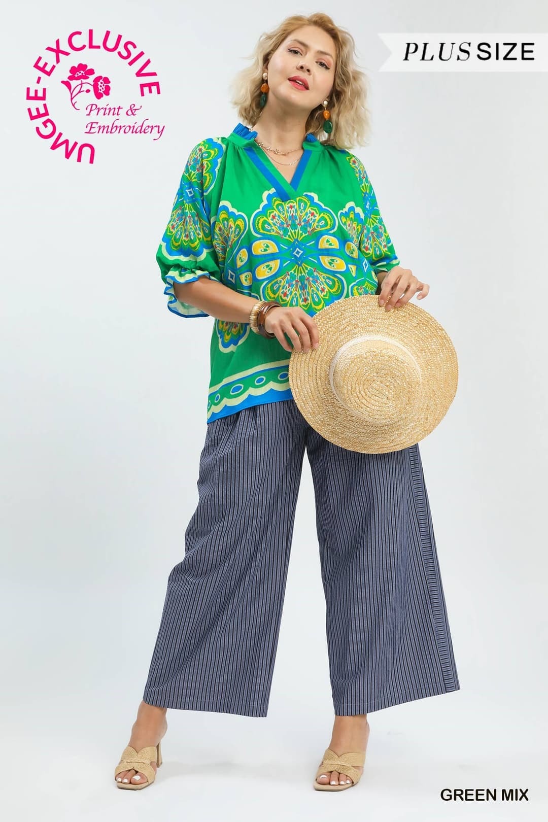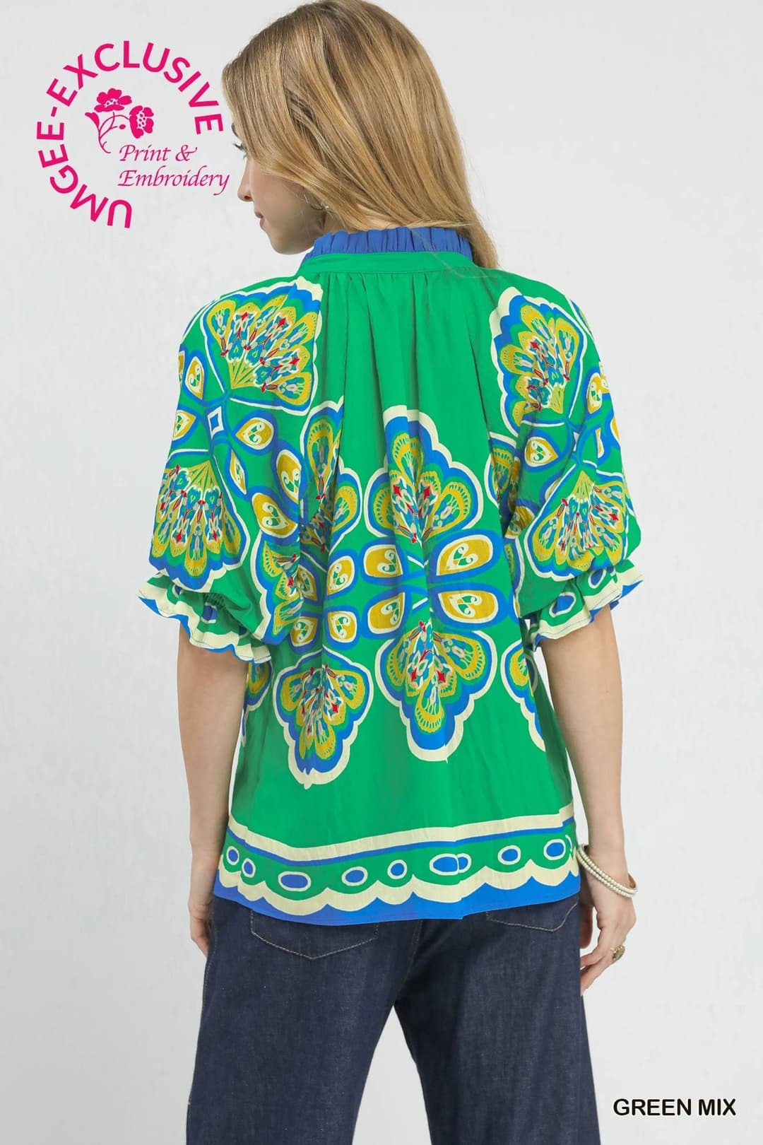 Umgee Boho Print Top in Green ON ORDER