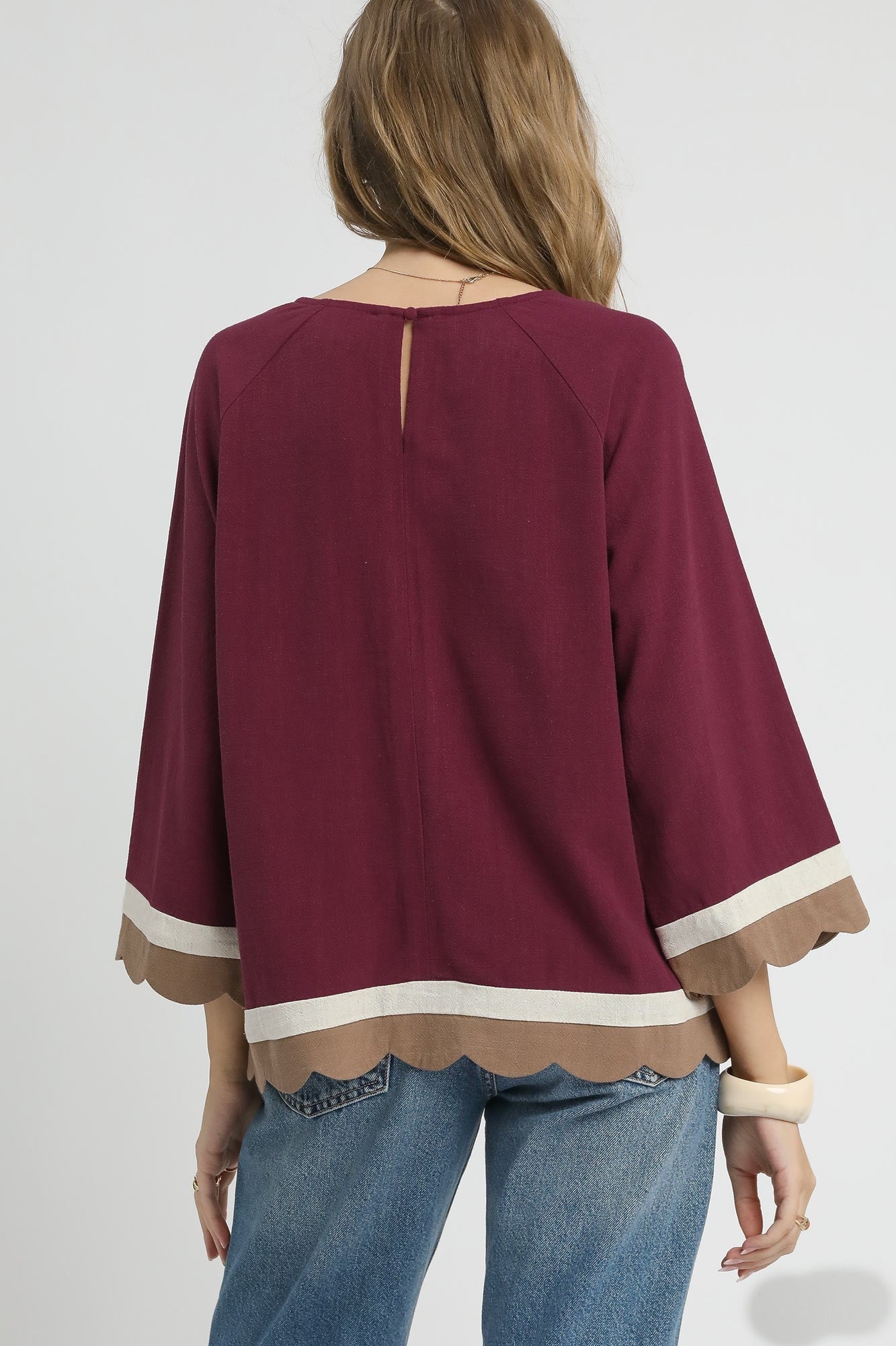 • 3/4 Length Wide Sleeves with Scalloped Cuffs