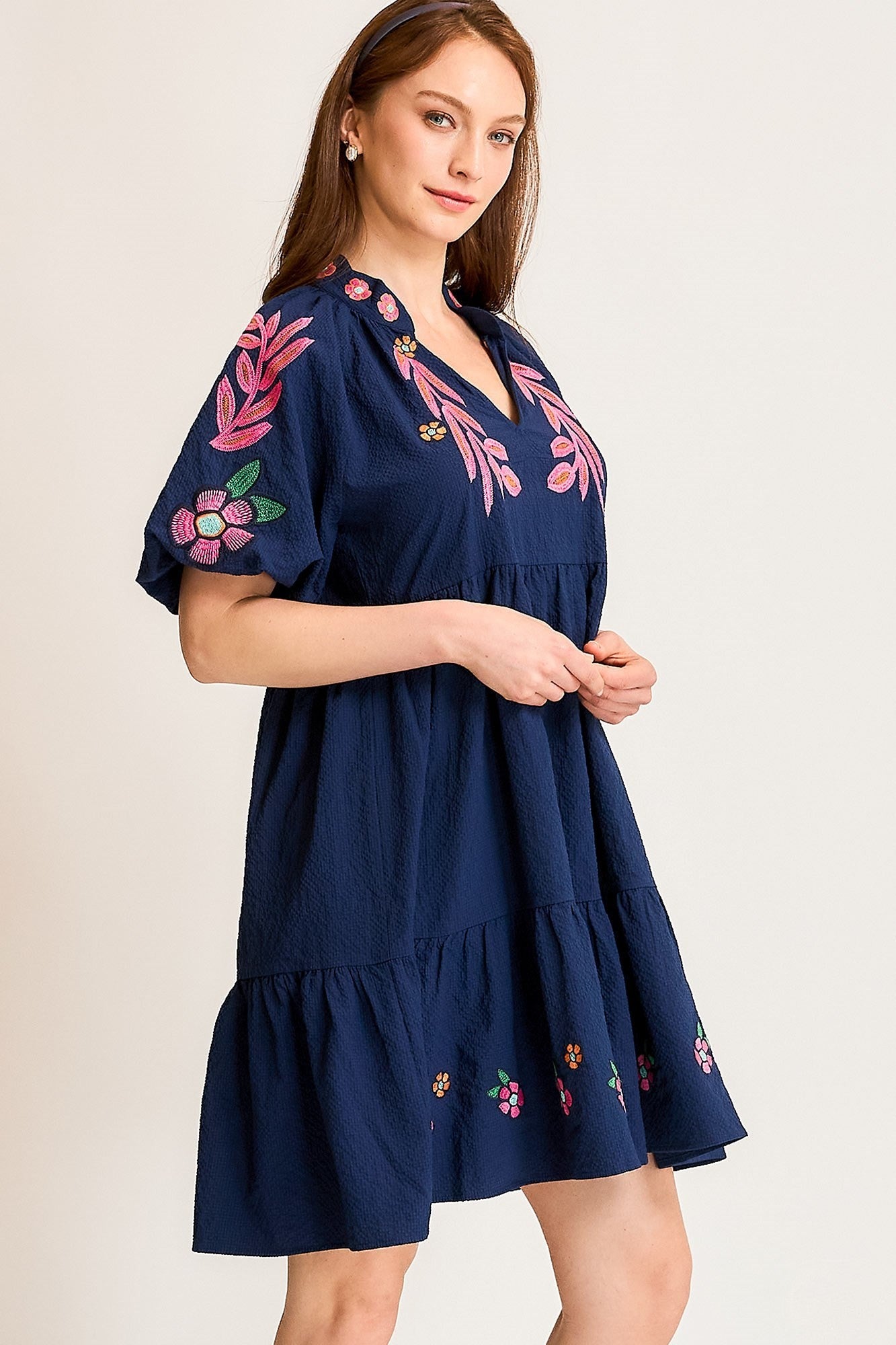• Load image into Gallery viewer, Umgee Embroidered Boho Dress in Navy