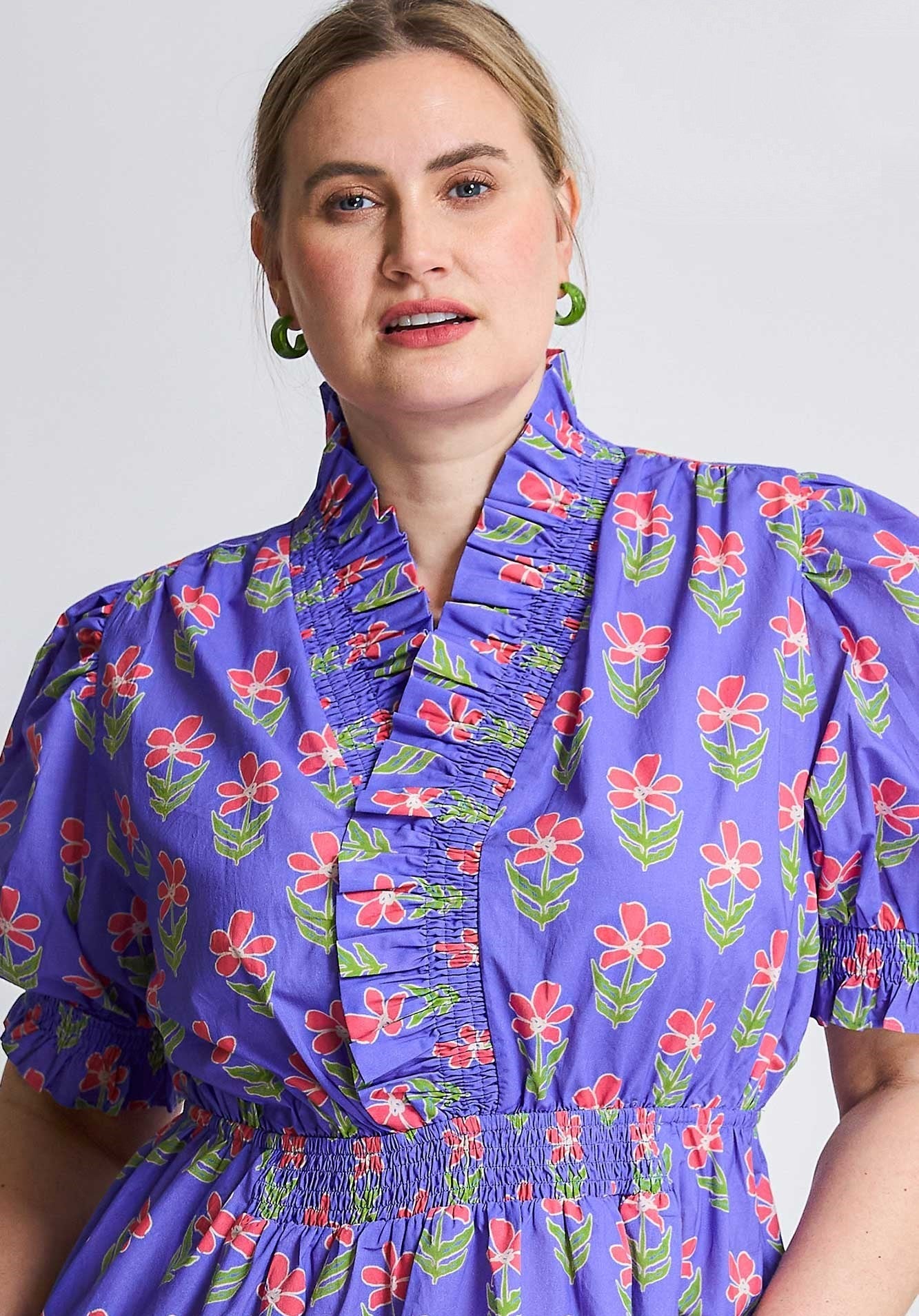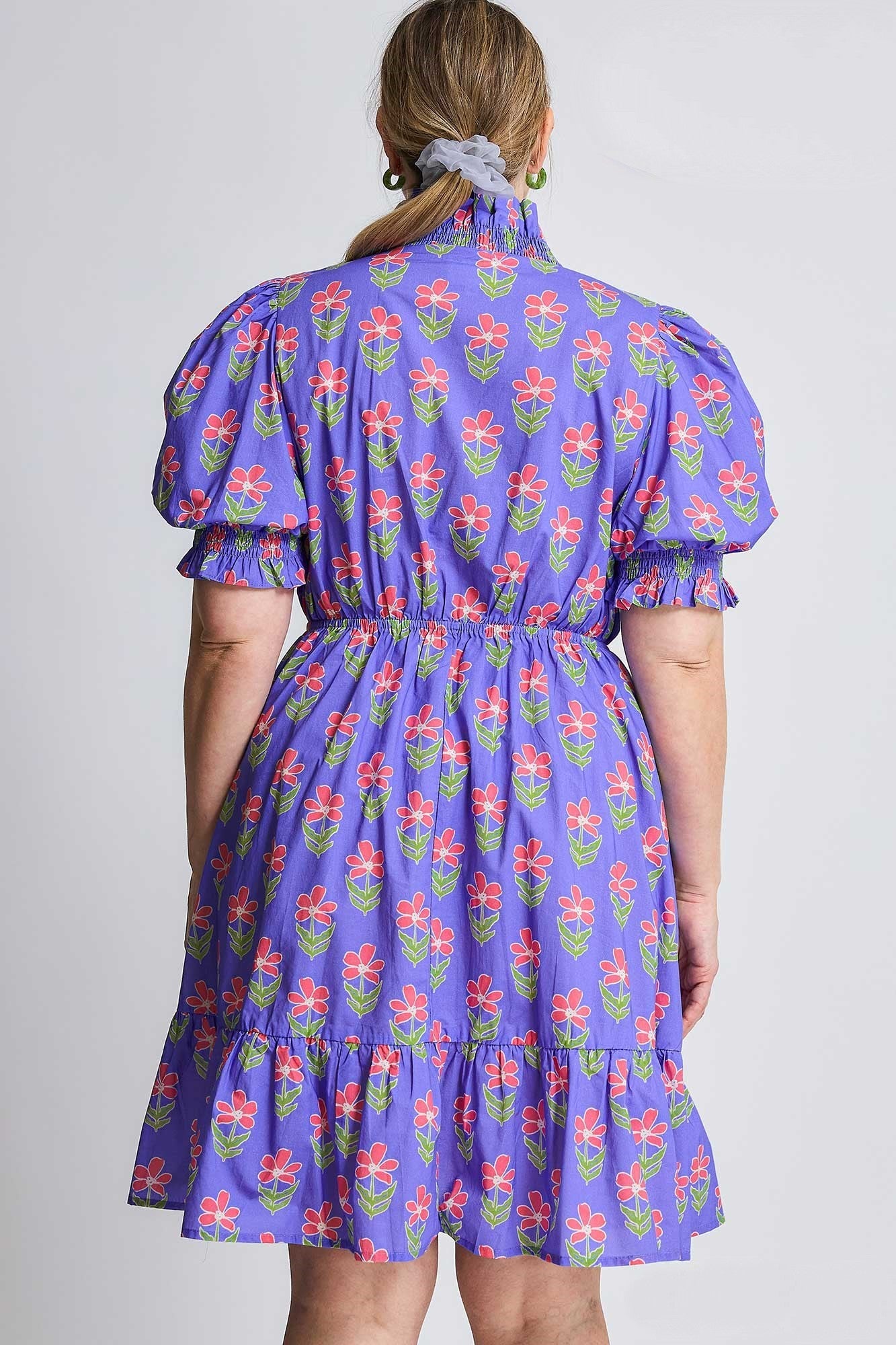 Umgee Floral Print Ruffle Detailed Mini Dress in Periwinkle Mix