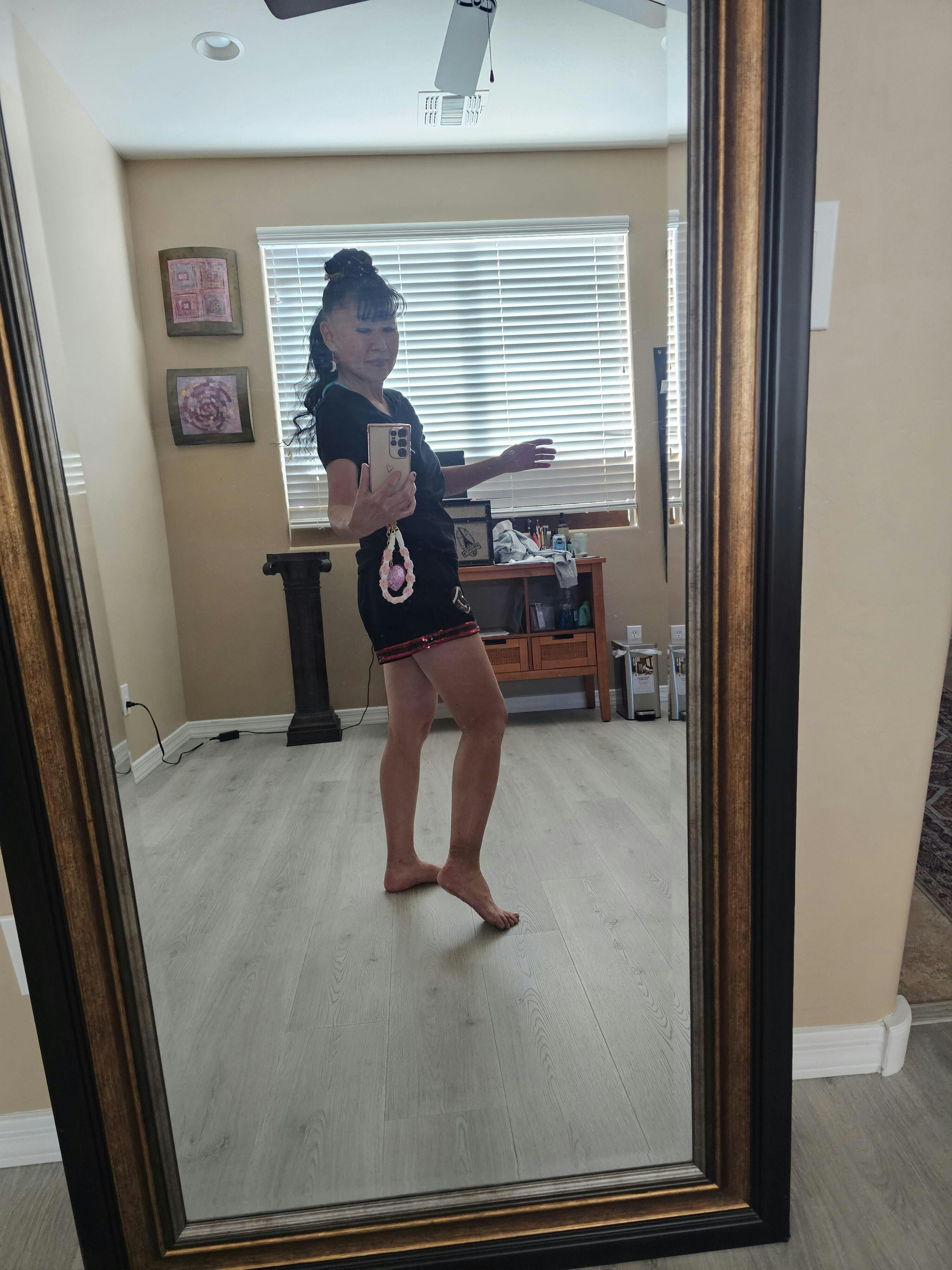 Super cute and so much fun. The material is quite thick. Fits just right. No itchiness behind sequin band.