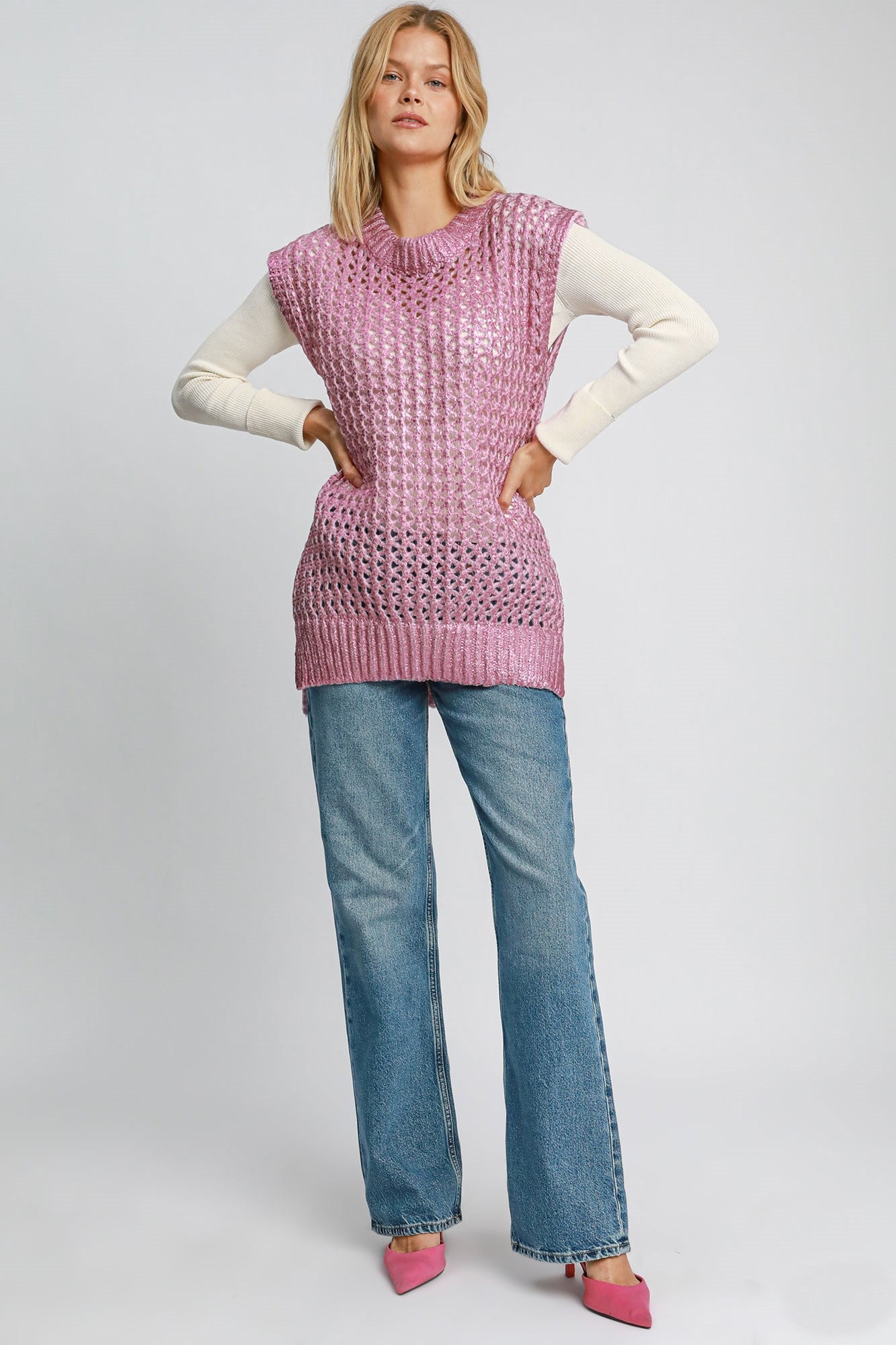 Umgee Metallic Foil Sweater Tunic Dress in Pink
