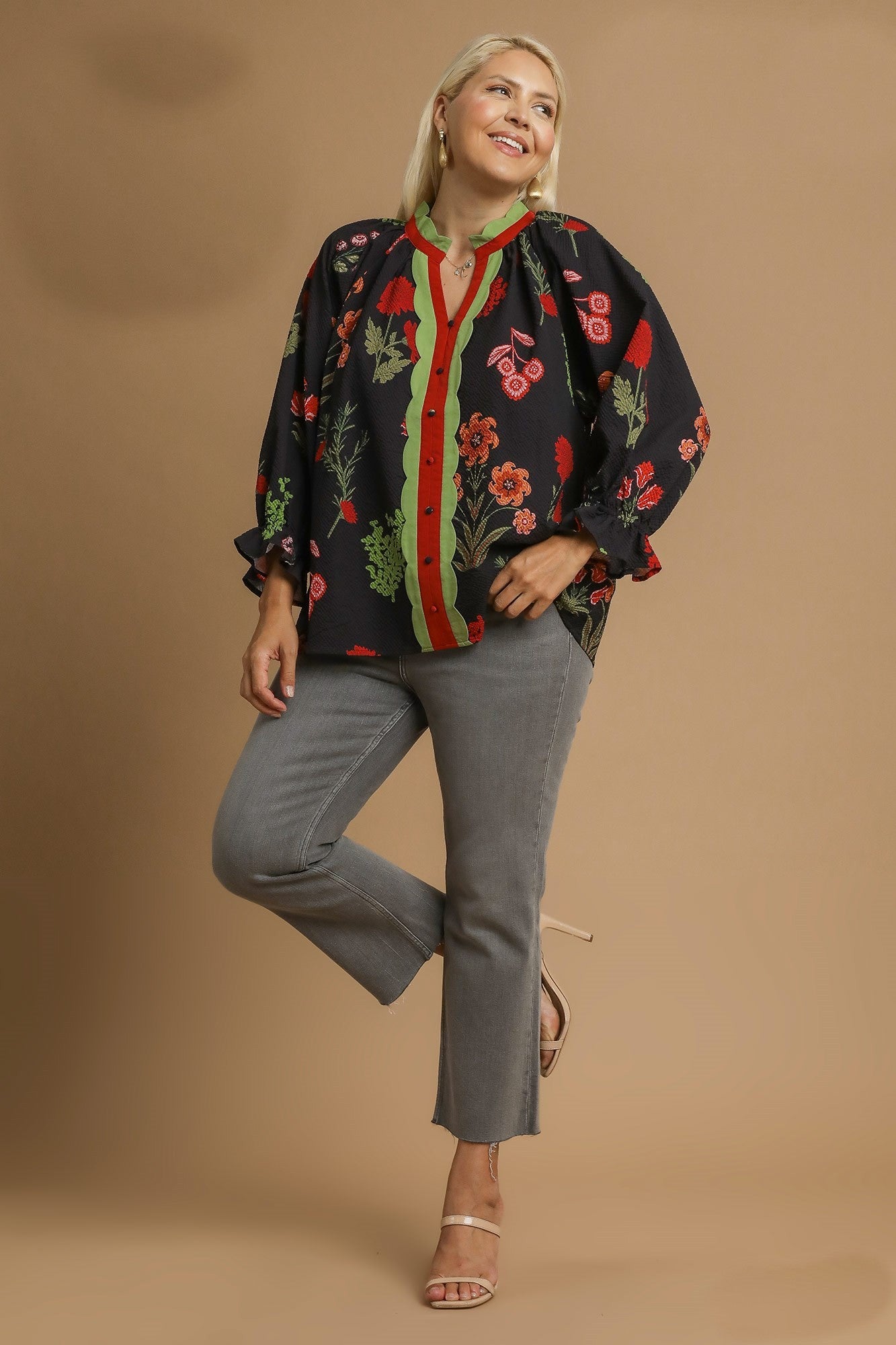 • Load image into Gallery viewer, Umgee Mixed Floral Textured Top in Black Mix