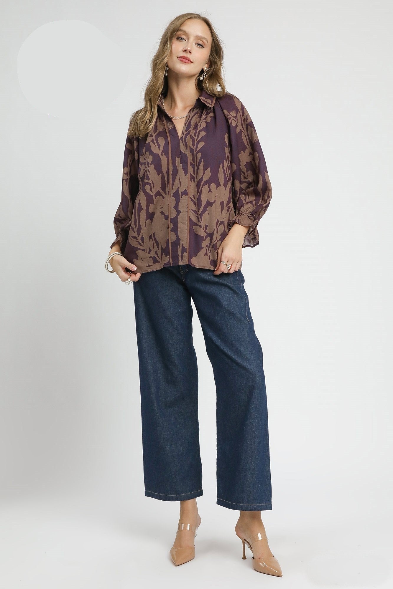 Umgee Two Toned Eucalyptus Print Top in Brown Mix