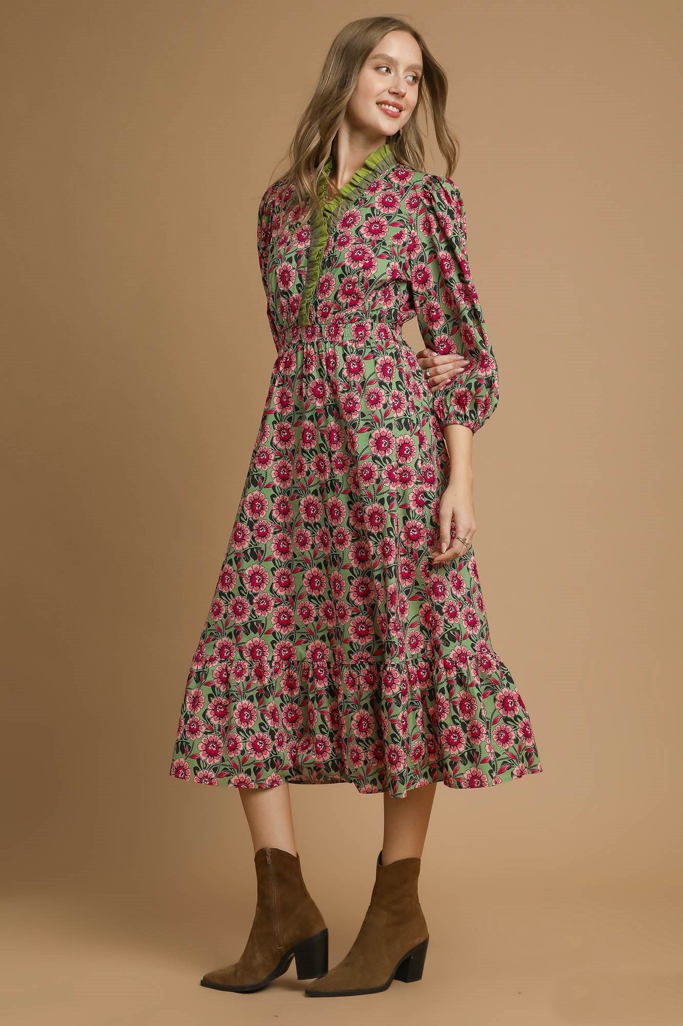 - Smocked and Ruffled Deep V Neckline