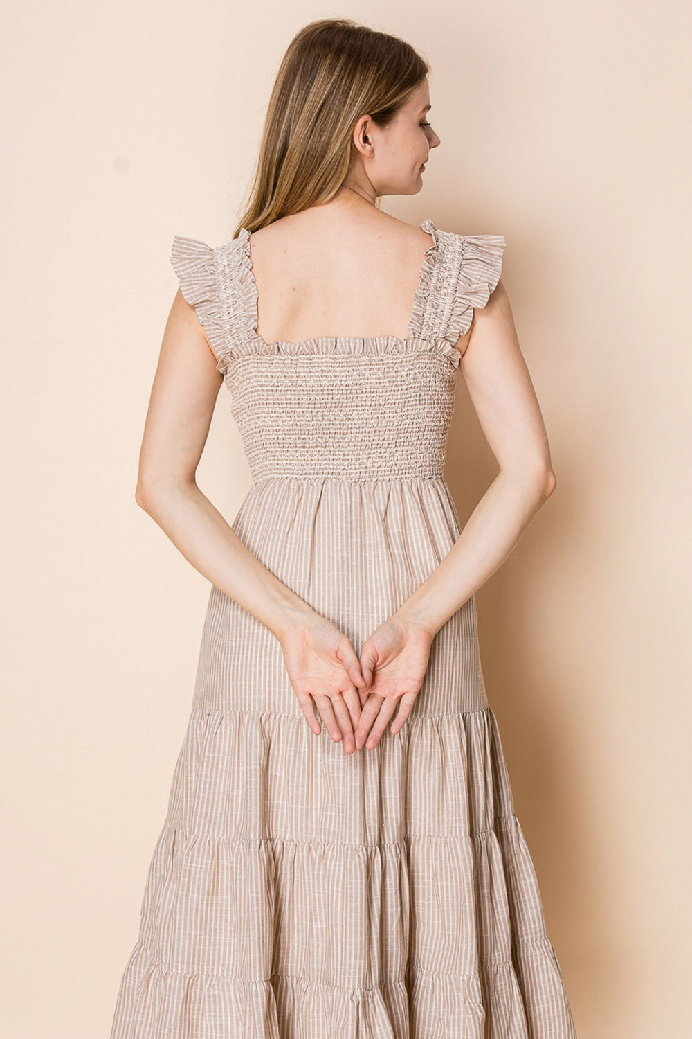 • Load image into Gallery viewer, White Birch Contrasting Striped Midi Dress in Natural